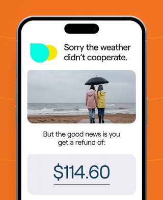 Add a Weather Guarantee™ to your trip or experience. We'll monitor the forecast and proactively reimburse you if bad weather is present. No claims, no hassle.