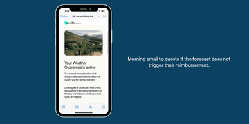 If observed weather data differs from the forecast and triggers the Weather Guarantee, guests receive an additional email and text later in the day to initiate the reimbursement.