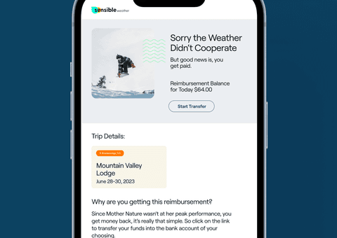 After booking, guests receive communication from Sensible Weather with forecast information and with details about their coverage. Each day of their trip or experience, guests then receive proactive reimbursements if weather conditions exceed the guaranteed threshold, allowing them to enjoy their time without weather worries.